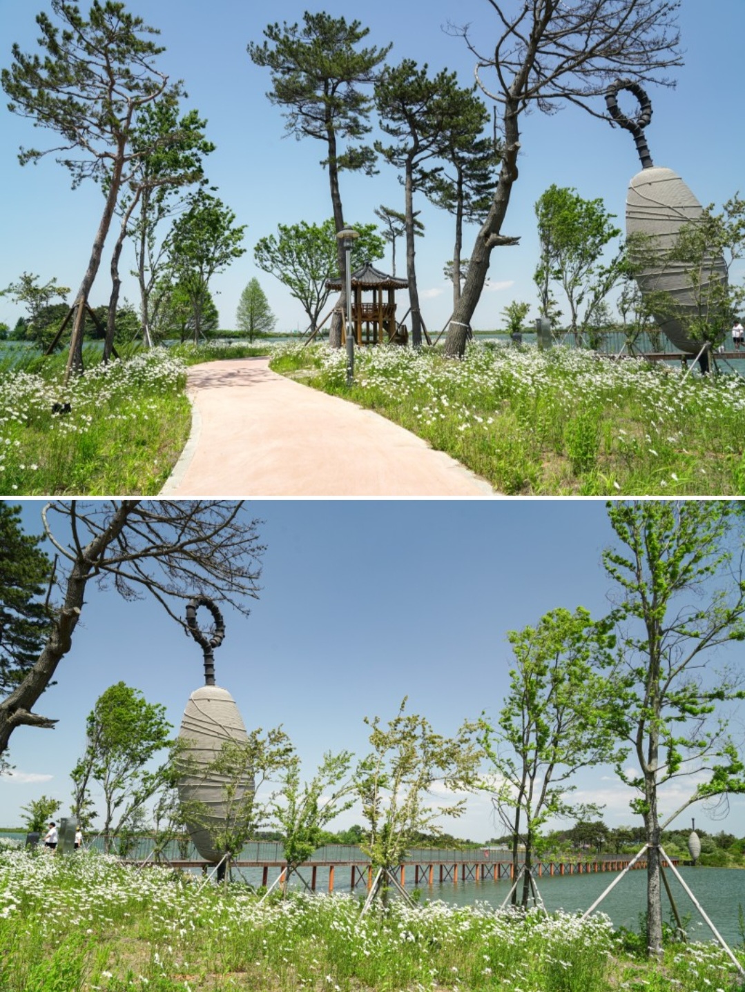 걷기좋은 길풍경과 호수그리고 꽃들을 선사하는 다리와 걷기 좋은 수변둘레길은
